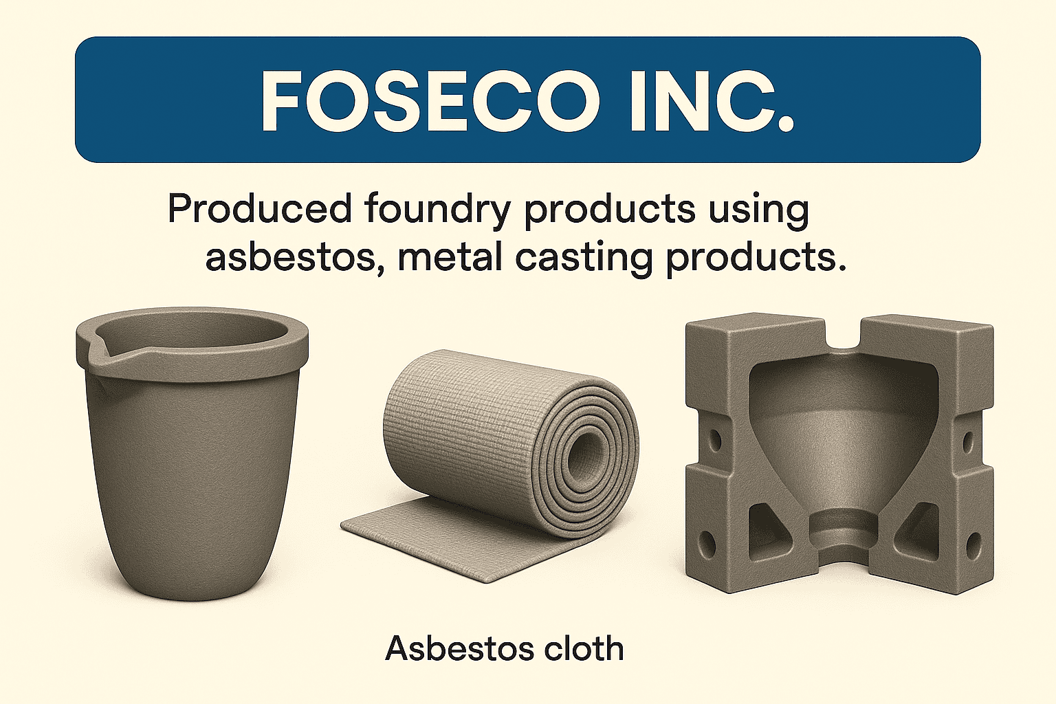 Foseco Inc. produced foundry products containing asbestos, exposing metal casters, mold makers, and plant workers to airborne asbestos fibers. These exposures occurred primarily during production, molding, and pouring operations in foundries, where asbestos was valued for its heat resistance and insulating properties.
